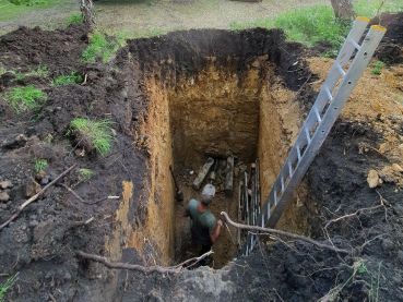 Используется разрушитель труб для замены старой трубы из колодца.